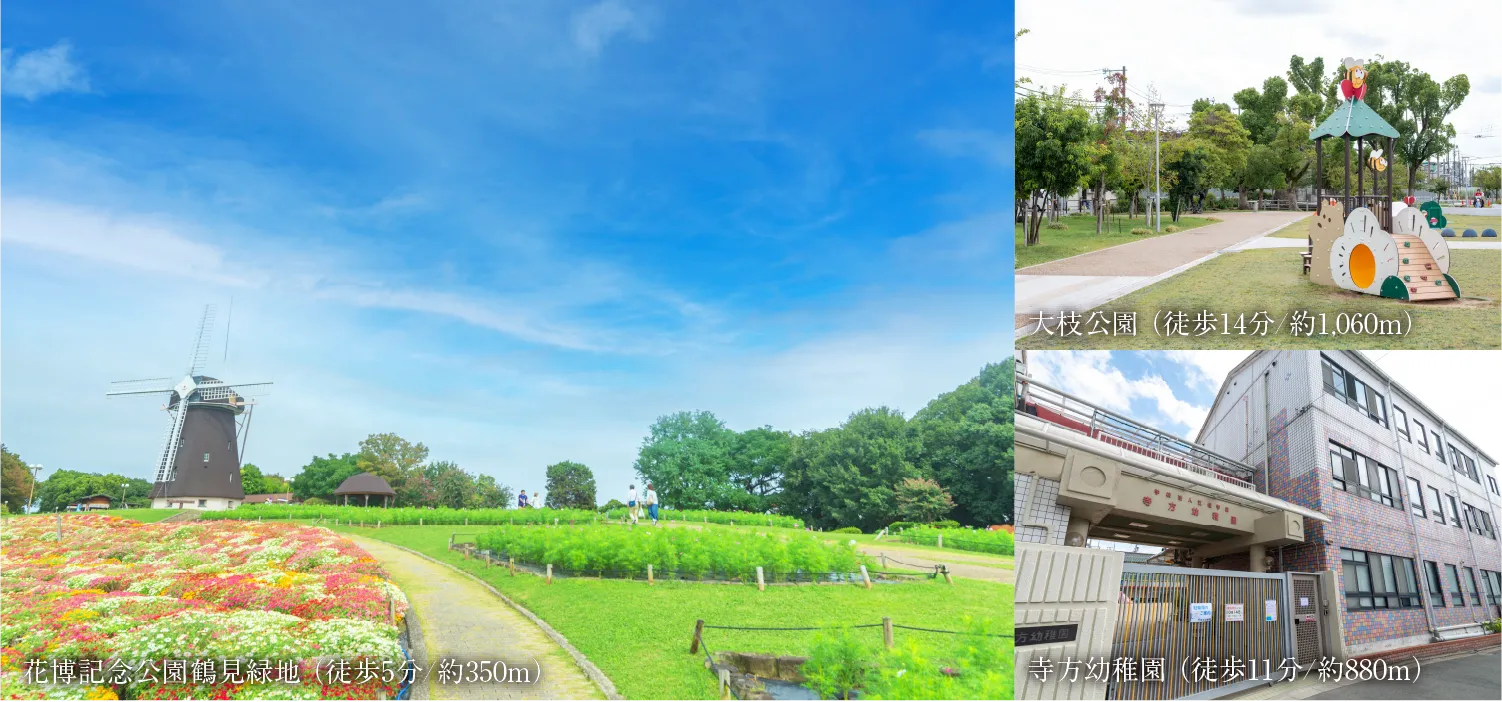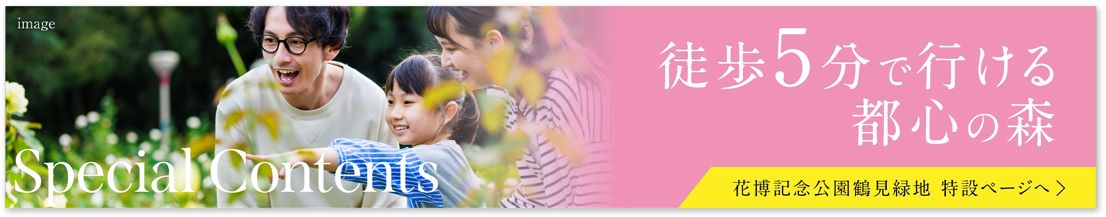 「花博記念公園鶴見緑地」を南に望む立地だからこそ。