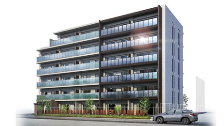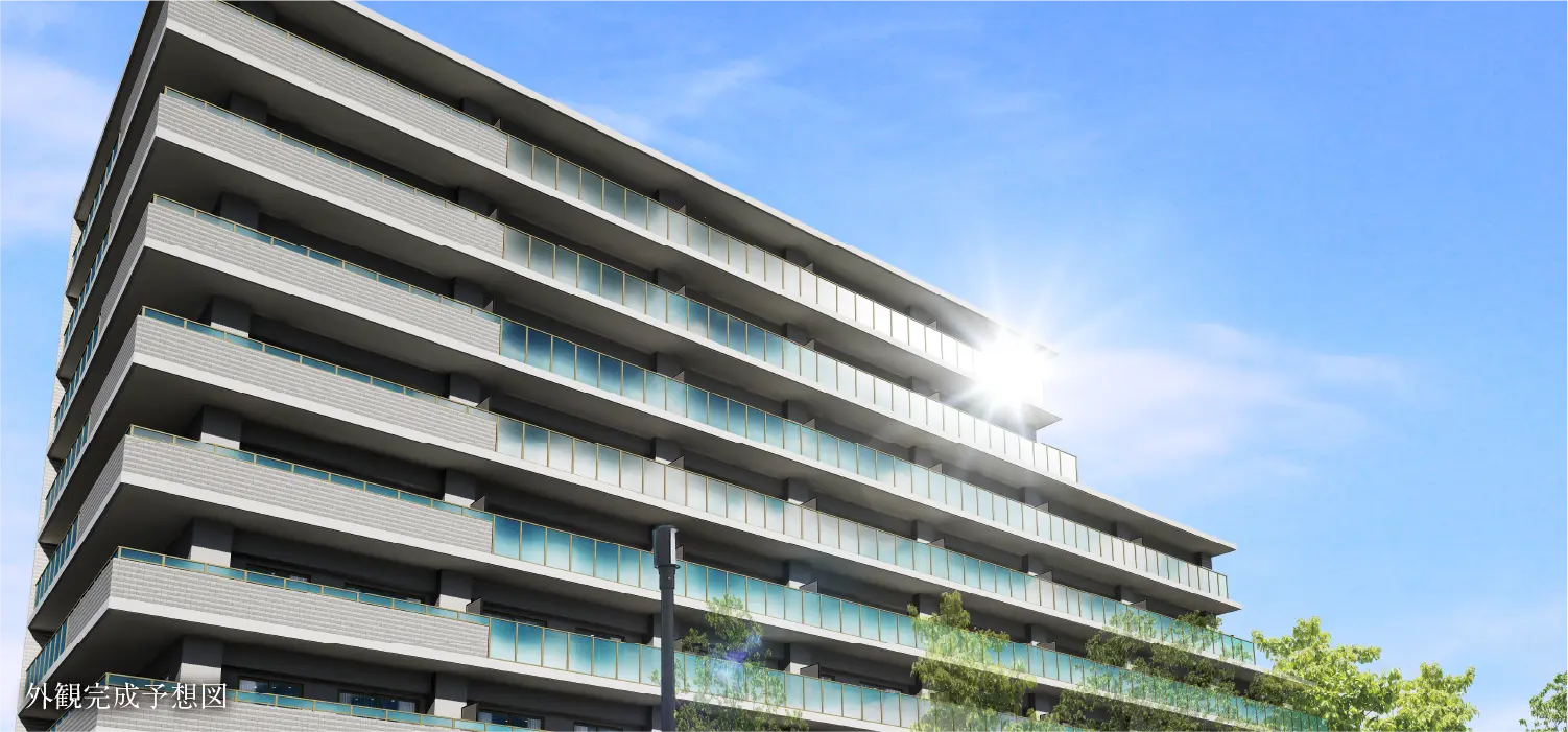- ※掲載の外観完成予想図は計画段階の図面を基に描き起こしたものに、現地周辺写真(2024年3月撮影)を合成加工したもので、実際とは多少異なります。