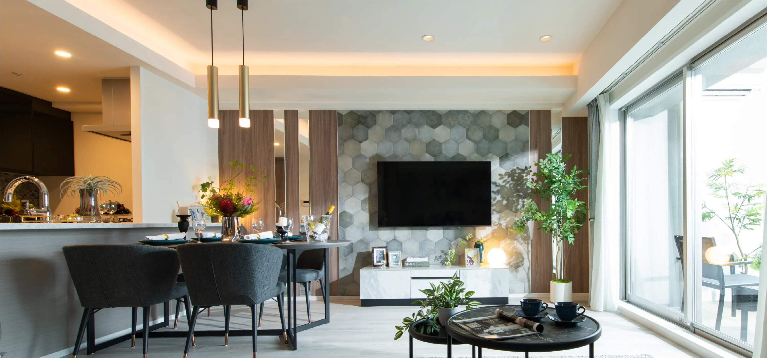 - ※掲載の室内写真は「サンクレイドル鶴見緑地公園」棟外モデルルームHタイプ(モデルルームの仕様としてプラン変更したものでHタイプの基本プランとは異なります。)を撮影(2024年8月撮影)したもので、一部オプション(有償)が含まれます。設計変更・家具・オプション・調度品などは販売価格に含まれておりません。