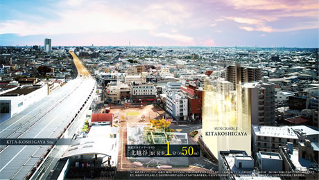- ※1 掲載の現地周辺航空写真は2023年10月に撮影したものに一部CG加工を施しており実際とは多少異なります。光の柱は本物件位置を示すためのものであり、建物の高さや規模を表現したものではありません。