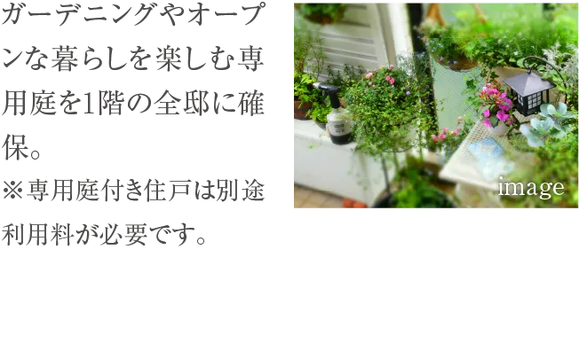 - ※植栽は植栽計画図を基に植樹予定の樹木をイメージ的に配置したもので、本物件完成時とは多少異なります。また植栽計画は多少変更する場合がありますので、予めご了承ください。