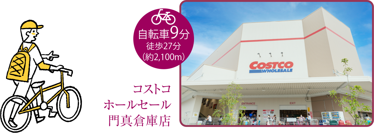 - コストコホールセール 門真倉庫店徒歩27分・自転車9分(約2,100m)