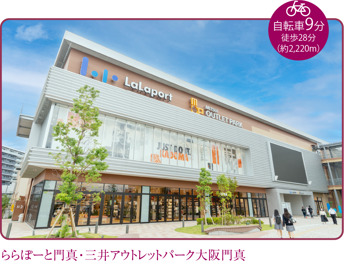 - ららぽーと門真・三井アウトレットパーク大阪門真徒歩28分・自転車9分(約2,220m)