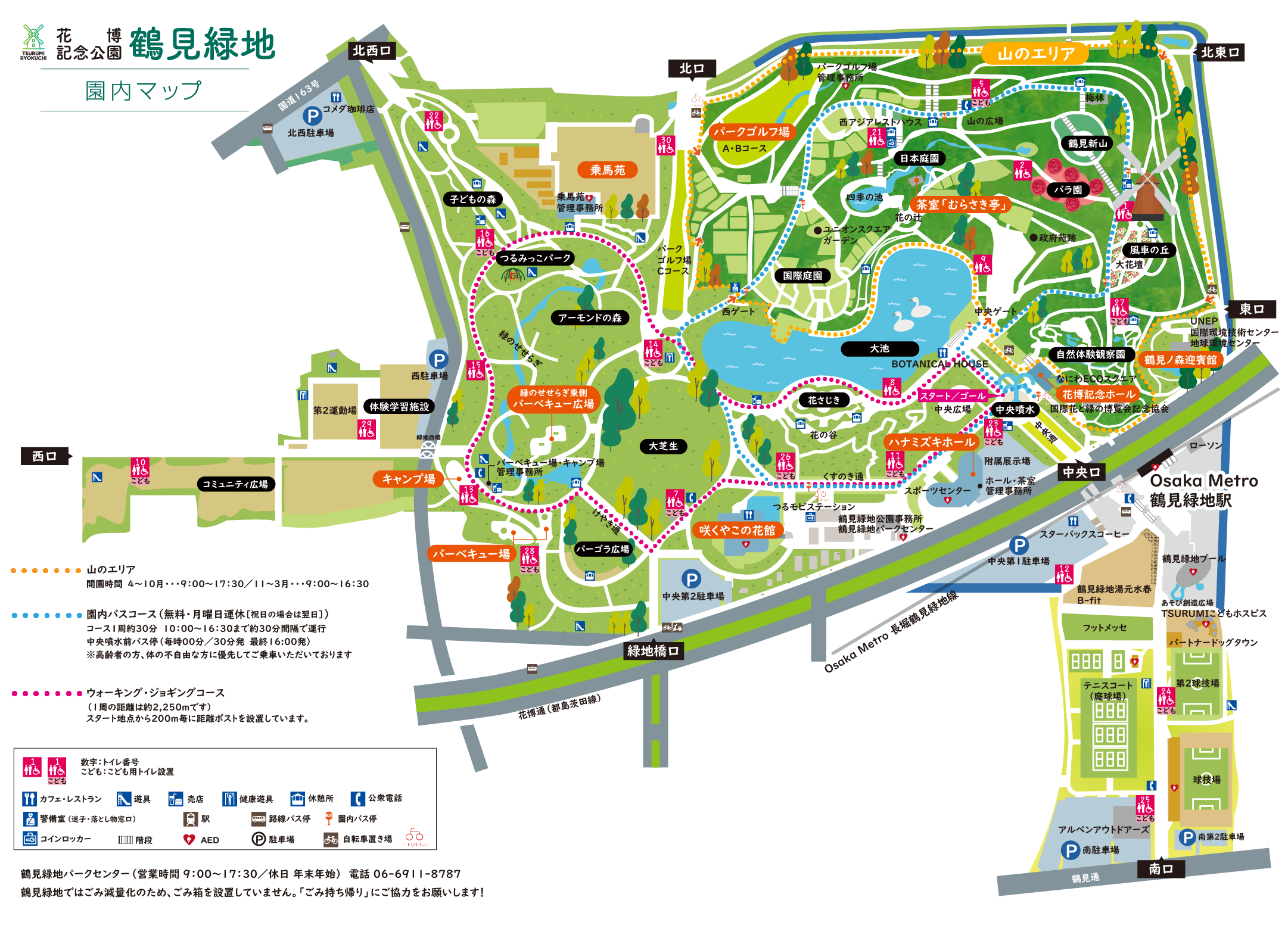 大阪市鶴見区と守口市にまたがるおよそ122haもの広大な緑地に、日本最大級の温室やホール・文化施設の他、レジャーからアクティビティまで数々の施設が揃う、都市公園。大阪四大緑地のひとつ。